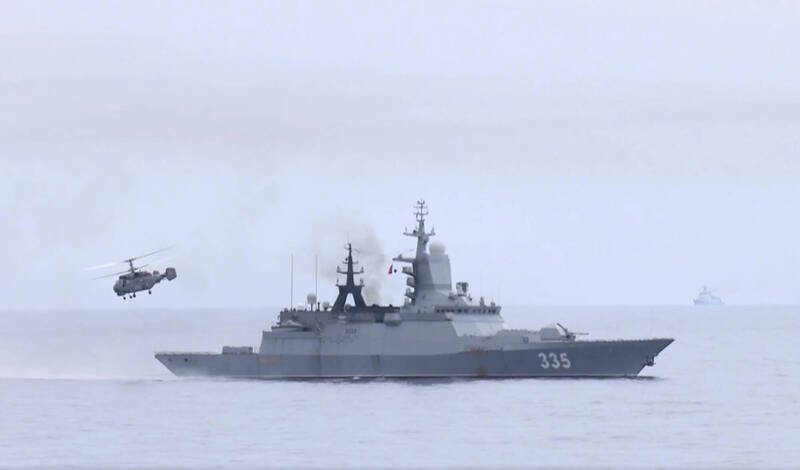 俄羅斯軍艦「響亮號」Gromkiy現身海參崴附近日本海的中俄聯合軍演。(歐新社)