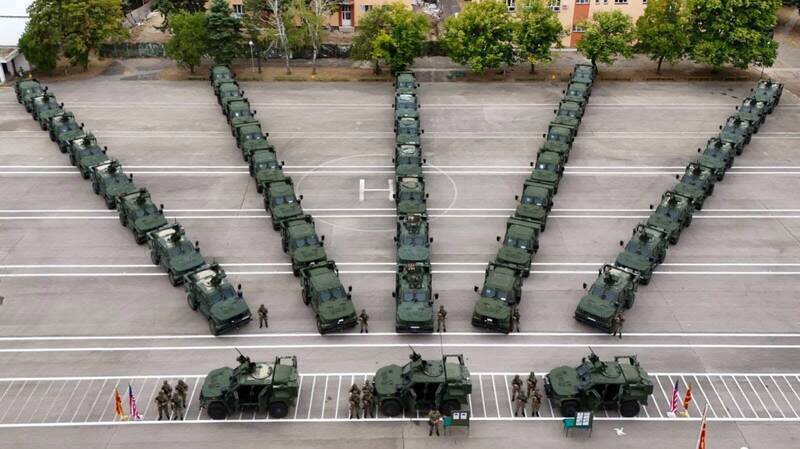南歐國家北馬其頓15日在陸軍某營區宣示接收最新一批29輛美製的JLTV聯合輕型戰術輪車、全車隊接裝進度逾7成,有效提升部隊機動作戰效益。(北馬其頓國防部官網)