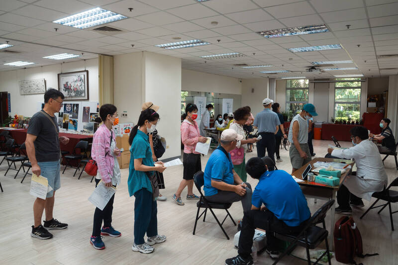 三軍總醫院松山分院長期推動「銀髮照護」與「社區關懷」巡迴醫療活動,獲得各界肯定,圖為今日參與活動的里民依序完成各項健康檢查及諮詢。(圖:軍聞社提供)