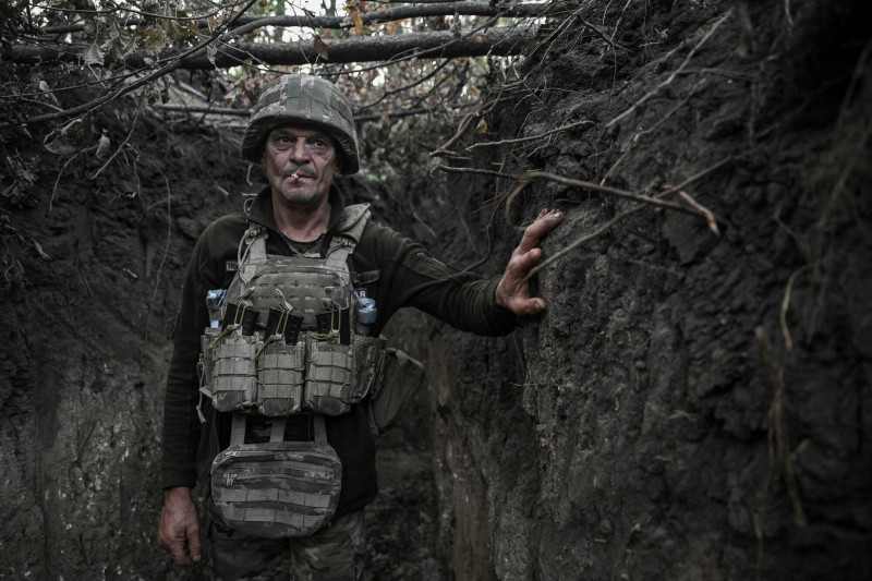 一名烏克蘭士兵在頓內茨克(Donetsk)地區的戰壕中。根據《華爾街日報》分析,俄烏戰爭已成一場殘酷的「沙漏對決」,烏克蘭正因兵力嚴重損耗而承受巨大壓力,前線的重擔不成比例地落在這些經驗豐富、卻日漸疲憊的士兵肩上。(路透)
