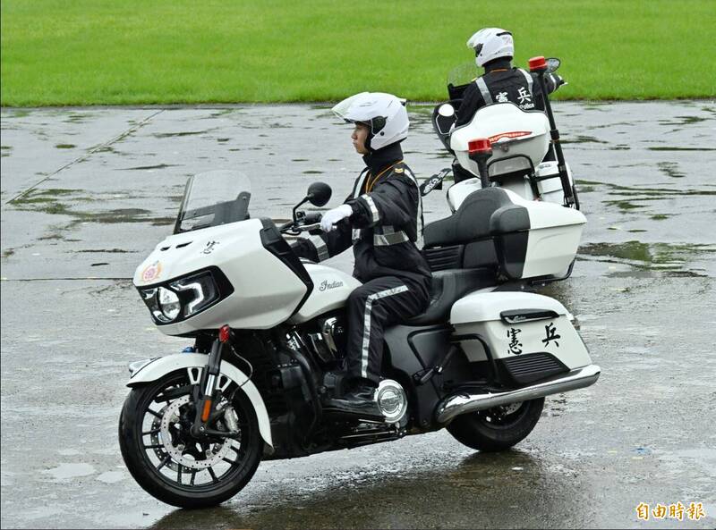 憲兵快速反應連是國軍唯一使用重型機車執行任務的部隊。想要騎乘重達377公斤的美製印地安「挑戰者」重機,新進人員除了要接受為期1個月的基礎訓練之外,還有「7大關卡」的挑戰。(資料照,記者田裕華攝)