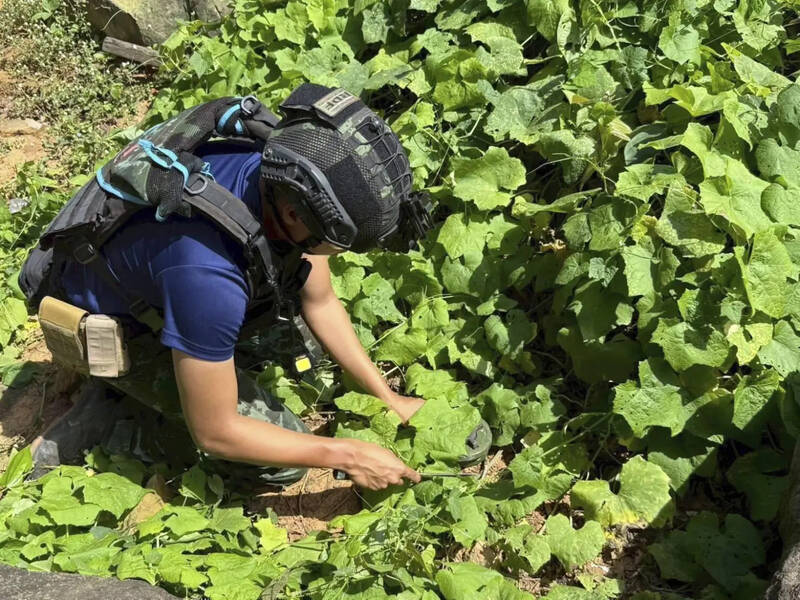 圖為泰方在泰柬邊境進行排雷工作。(美聯社)