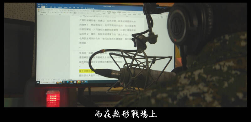 心戰大隊推出最新影片,強調心戰部隊在無形戰場上,處於抵抗敵人認知作戰的最前線,執行戰略溝通、鞏固國人心防,只為了台灣的民主與自由。(國防部提供)
