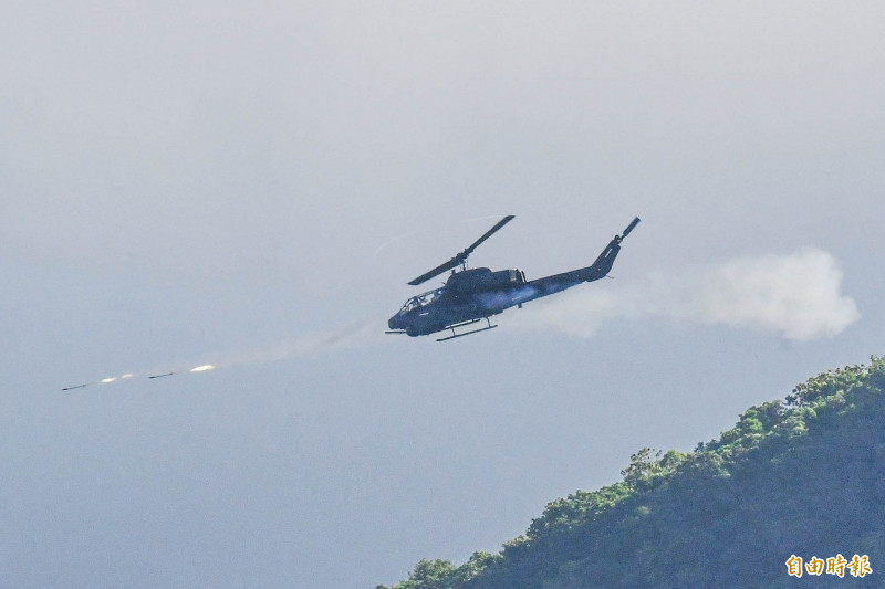 〔記者蔡宗憲/屏東報導〕陸軍航空特戰指揮部(航特部)602旅例行實彈射擊訓練,本週在恆春三軍聯訓基地展開,這場演訓共為期一周。602旅今日出動AH-1W眼鏡蛇攻擊直升機、OH-58D奇奧瓦偵察直升機及UH-60M黑鷹直升機,實施2.75吋海神火箭、20機砲及M240機槍射擊,模擬反制中國軍機、艦艇襲擾情境。
