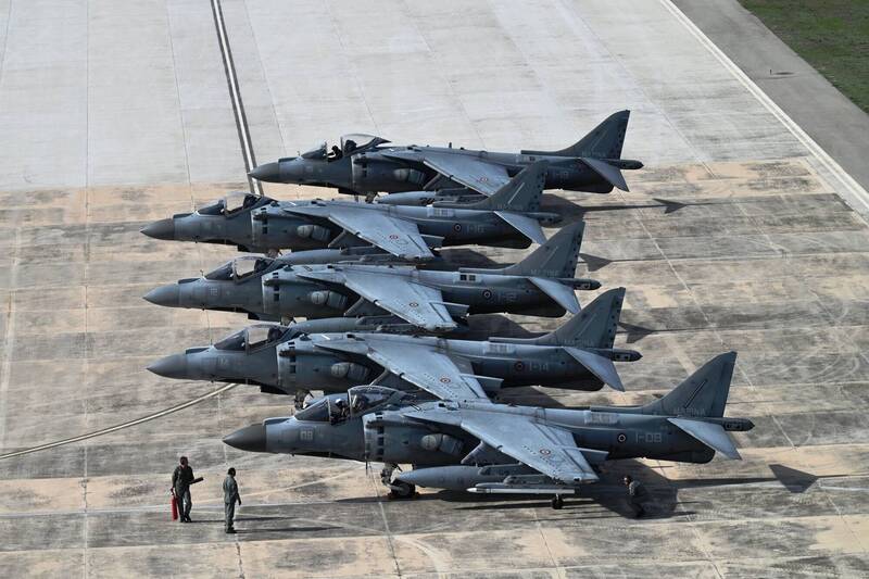 部署在義大利加富爾號航艦的AV-8B艦載攻擊機。(法新社檔案照)