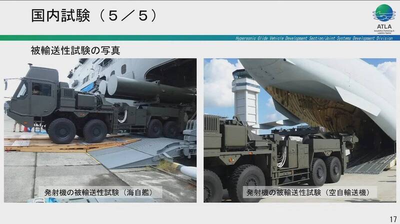 〔記者吳哲宇/綜合報導〕日本防衛省防衛裝備廳(ATLA)近日在「防衛裝備廳2025年技術研討會」上發布多項研究進度,ALTA表示,極音速滑翔彈分別經由海運及空運抵達高緯度地區,進行寒冷環境實彈測試,效果良好達到預期,預計將裝備兩個營,部署在北海道和九州。
