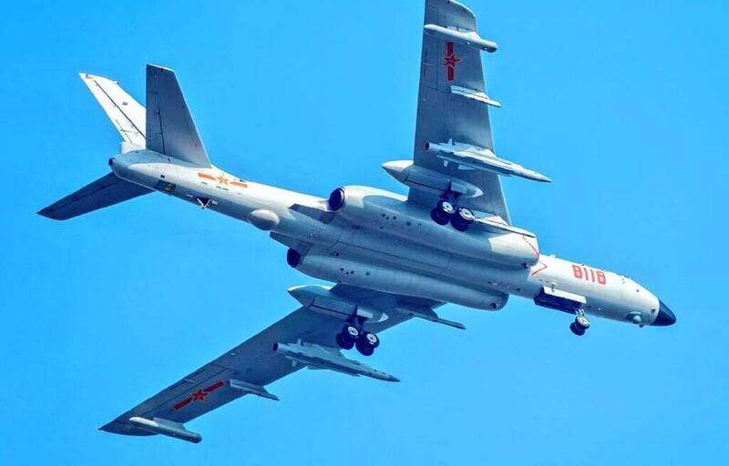 中國解放軍轟-6K(H-6K)轟炸機常態性掛載鷹擊-12(YJ-12)超音速反艦飛彈執行任務。最新報導指出,共軍近日派遣該型機巡航南海黃岩島。(圖取自微博)