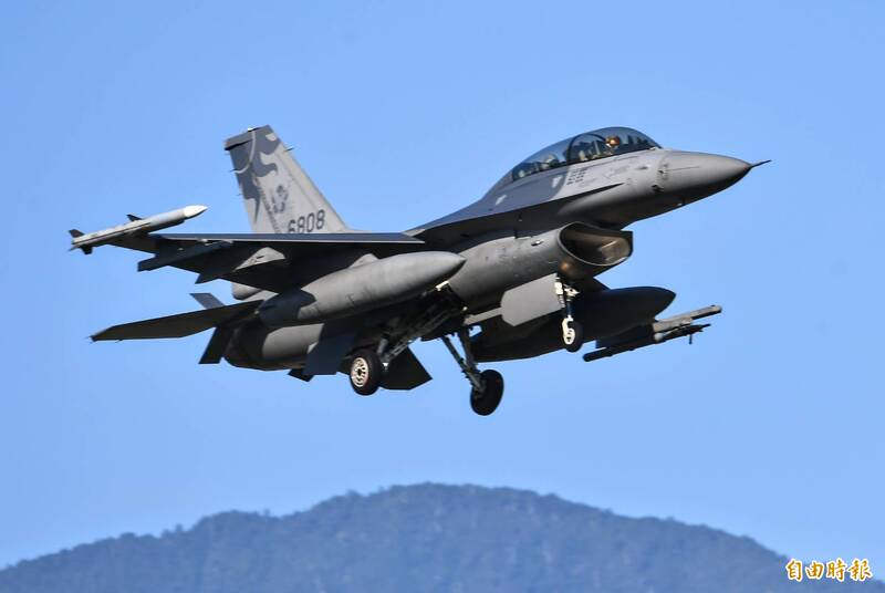 編號6808雙座型F-16V戰機,日前完成AIM-120飛彈發射訓練。國防部近期的書面報告也提到,今年度國防預算攸關該型機的後續費用。(資料照,記者游太郎攝)