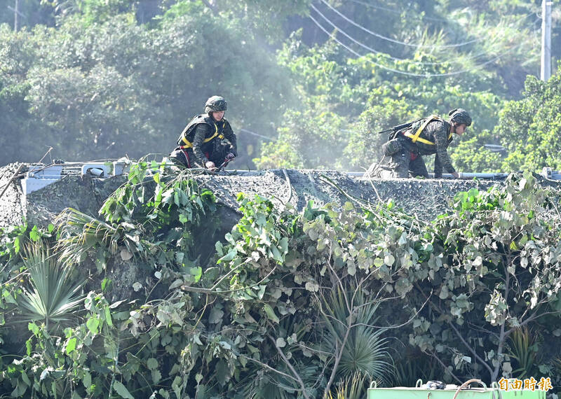海軍春節加強戰備展示精準阻擊暨攤岸阻絕。圖為偽裝雄二發射站。(記者王藝菘攝)