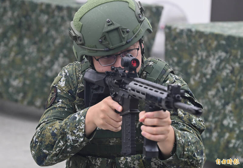 為強化博愛特區的防衛及反突擊戰力,有「天下第一營」之稱的總統府211憲兵營,官兵使用的步槍,在本月起已由原本的T91步槍全面換裝為T112戰鬥步槍。圖為陸軍部隊先前已換發T112步槍的畫面。(資料照)