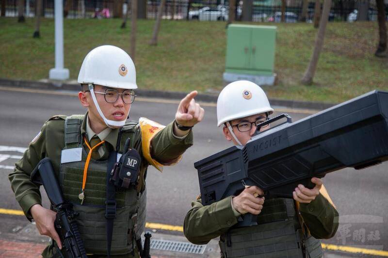 官兵運用干擾槍,對低空無人機進行干擾。(圖:軍聞社提供)