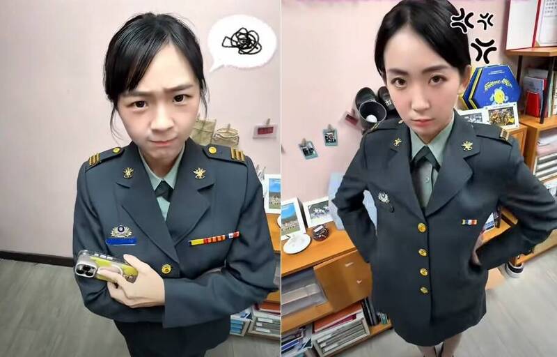 正妹尉官大跳時下最流行的「撒嬌舞」。(取自國防部藝工隊粉專)