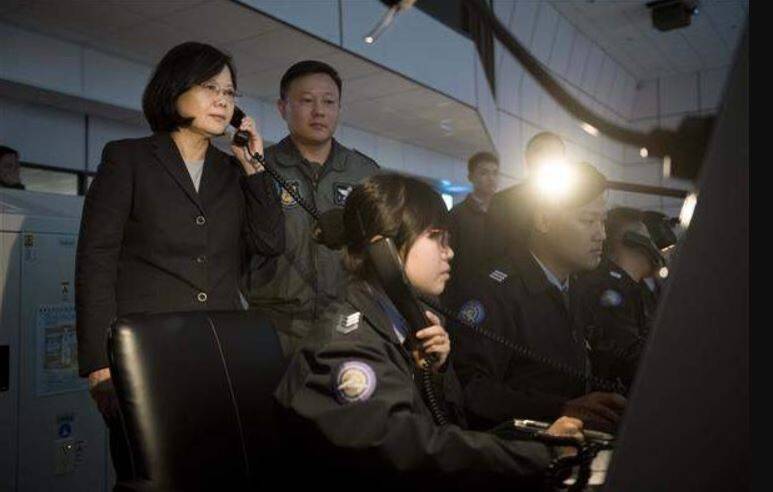 前總統蔡英文曾視導空軍作戰指揮部,並在空管中心與執行任務中的F16飛行員通話。(圖:取自總統網站)。