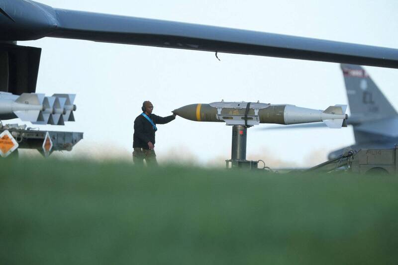 美國有線電視新聞網(CNN)12日報導,11日拍攝的影片顯示,這款重型長程戰略轟炸機在英格蘭西南部格洛斯特郡的費爾福德(Fairford)基地,掛載可貫穿掩體的炸彈,顯然準備到伊朗打擊地下深處目標。