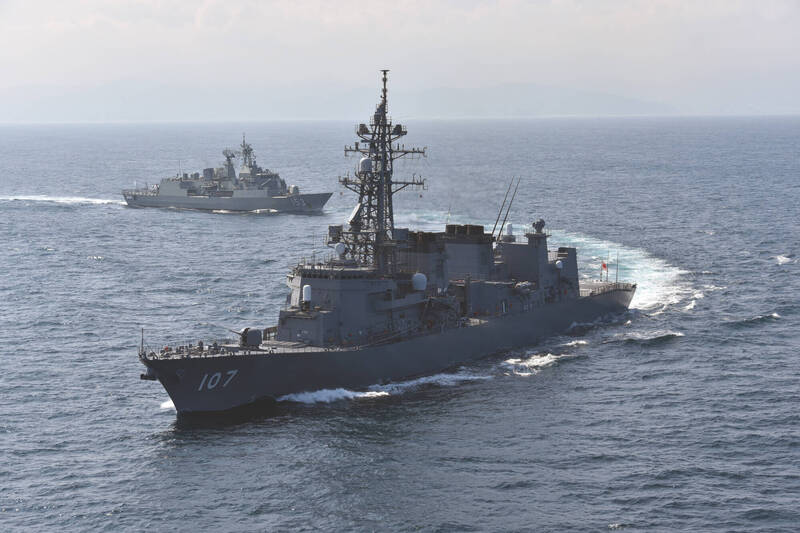 日本海上自衛隊護衛艦「雷」號(舷號107)17日通過台灣海峽,將前往南海,參與美國與菲律賓的「肩並肩」聯合軍演。(圖:取自日本海上自衛隊網站)